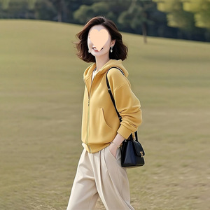 女性のための黄色のショートフード付きスウェットシャツジャケット 2025 春の新しいスタイルのアウトドアワーカー着用ドーパミントップ