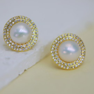 ジルコン大粒パールスタッドピアス