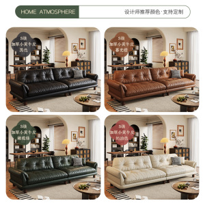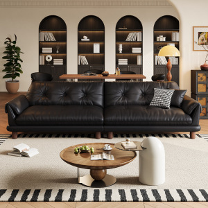 艾沃适客厅真皮沙发意式极简直排小户型复古黑色实木头层牛皮沙发
