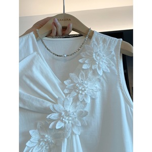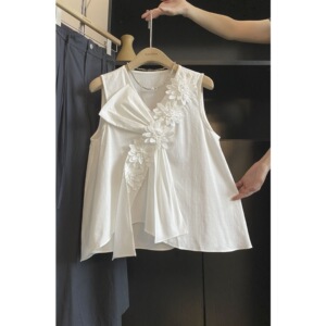 【夏の新作】毎日フレンチなレイジーを着よう # 立体的な花の装飾が施されたベスト