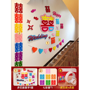 新婚の部屋のリビングルームのテレビの背景の壁の装飾、男性と女性の結婚式の完全なセット、ドーパミンの雰囲気の装飾