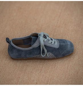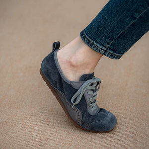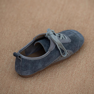 グレー本革牛革 2025 新しいアウトドア道徳トレーニングシューズ女性のフラットカジュアルシューズ本革シングルシューズ何と醜い女性の靴