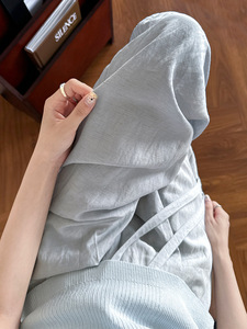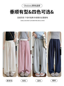 女性用オールインワンウォッシュドテンセルリネンワイドレッグパンツ、夏用薄手ハイウエストルーズストレートパンツ、レイジーカジュアルシミターパンツ