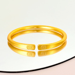 越南黄铜沙金福字手镯古法工艺制作女素圈传承强耐磨五个月不掉色
