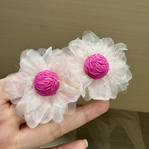 リゾートスタイルのメッシュフラワー万能イヤリング
