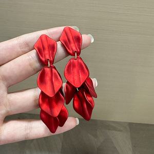 香港スタイルの通勤用赤い花びらロングイヤリング