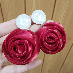 パーソナライズされた赤い生地の花のタッセル ビーズ イヤリング