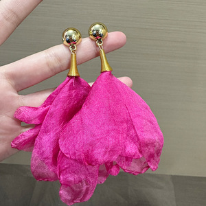 ニッチメッシュフラワーシフォン花びらイヤリング