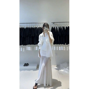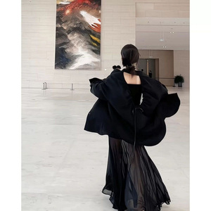 气质百搭高级感慵懒露背抽绳衬衫网纱拼接吊带裙独特设计两件套女