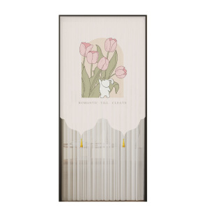 【二層クロスガーゼドアカーテン】フラワーチューリップ-2枚合わせ