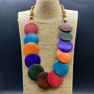 クロスボーダーヨーロッパとアメリカの誇張されたボヘミアンラージディスクウッドネックレスレトロセーターチェーンパーソナライズされたロングキャットウォークアクセサリー