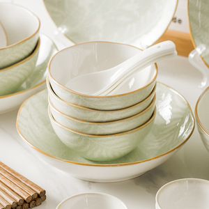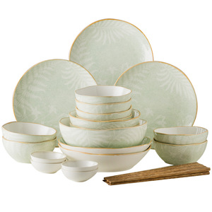 釉下彩-28头凤尾草餐具-浅绿