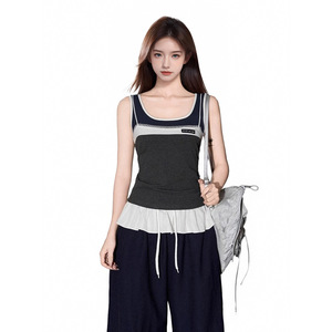 アメリカングレー偽スリーピースコントラストカラーキャミソール女性の夏のアウターウェアとインナーレイヤリングワイドショルダーストラップベストトップ夏