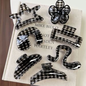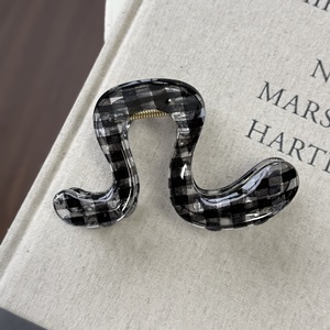 韓国の中世風ブラック多用途チェック柄樹脂ヘアクリップハイエンドヘアクリップサメクリップ新しいスタイル