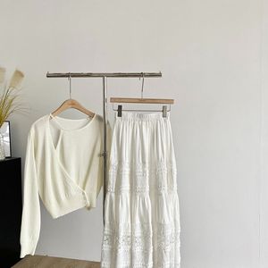 白いレースのスカート刺繍夏 2025 新しいスリムフレンチロングスカートハイウエストレースケーキ