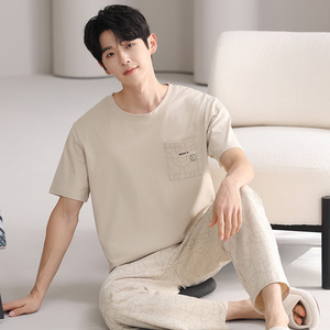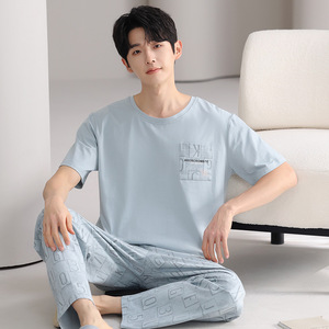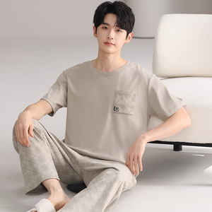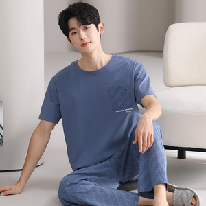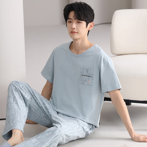 メンズパジャマ 夏 半袖 長ズボン 新しい綿素材 薄手 ゆったり 春夏 ホームウェア 外出着セット