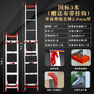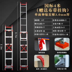 エンジニアリングはしご伸縮式 3-12m ポータブルアルミ合金厚みのある階段折りたたみ昇降はしご建設現場家庭用はしご