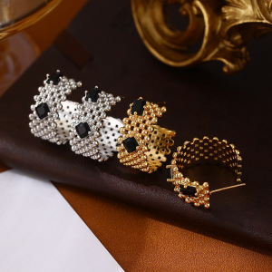 サークル中古東大門イヤリングレトロライト高級ハイエンド感覚四角顔と丸顔インスタイルジルコンイヤリング誇張イヤリング
