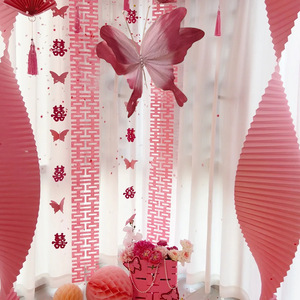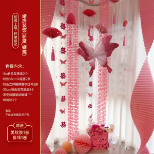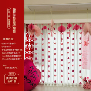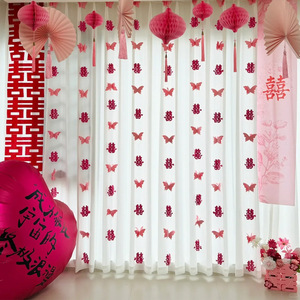 結婚式の部屋の装飾セット、結婚式の新しい家のカーテン、立体的な蝶の装飾、結婚式のリビングルーム、寝室、長いストリップのハッピーワードラテアート