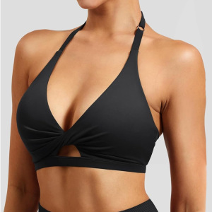 亚马逊跨境运动文胸女瑜伽背心可拆卸肩带聚拢扭结文胸运动内衣女