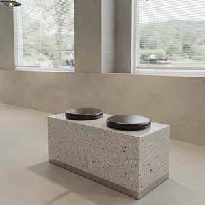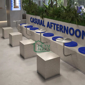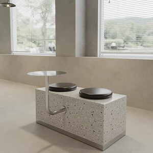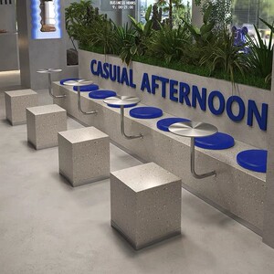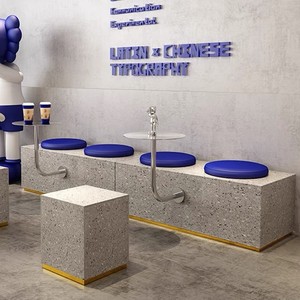 ミルクティーショップのカウンターソファ壁待合室コーヒーデザートベンチテラゾーセメントインダストリアルスタイルのダイニングテーブルと椅子