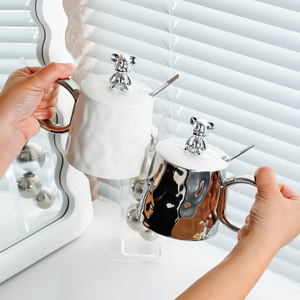 軽量高級セラミックカップ、ウォーターカップ、蓋とスプーン付きマグカップ、オフィス用高級コーヒーカップ、お土産