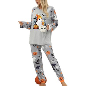 メーカー既製婦人服ホーム服ヨーロッパとアメリカのツーピーススプリットホーム服パジャマハロウィンカボチャプリント