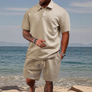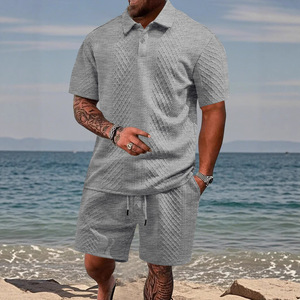 クロスボーダー紳士服夏ヨーロッパとアメリカの新しいジャカード生地メンズカジュアルスポーツ薄いラペルポロシャツ半袖スーツ