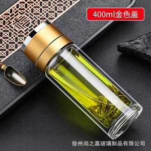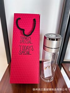 高ホウケイ酸ガラスのクイックオープンカップ、車載用片手ワンクリックオープン蓋ウォーターカップ、二重層火傷防止および断熱茶水分離カップ