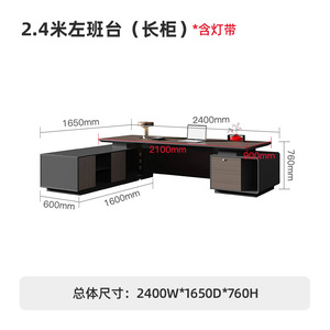 2400W*900D*760H 左デスク (ショートキャビネット) ライトストリップ付き