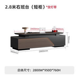 2800W*950D*760H 右デスク (ショートキャビネット) ライトストリップ付き