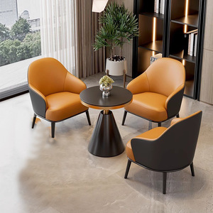 軽くて豪華な受付交渉テーブルと椅子の組み合わせ営業所休憩所小さな丸テーブルレザー交渉ソファ椅子展示ホール4Sショップ