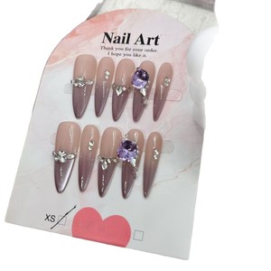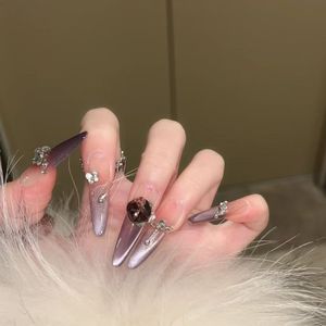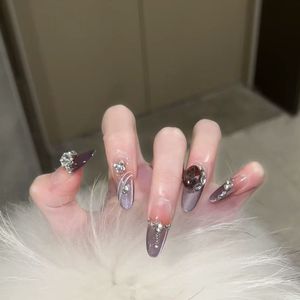 IRIS PURPLE | 純粋な手作りの純粋な欲望スタイルのロングチップクリアパープルキャットアイフラッシュゴールデンホワイトネイルアートウェアラブルネイル