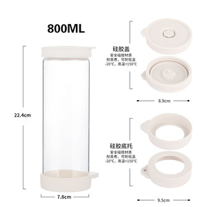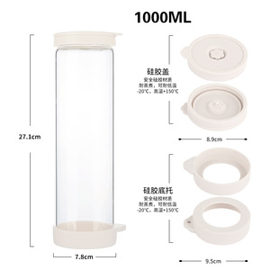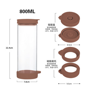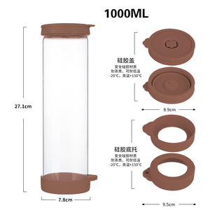 跨境亚马逊高硼硅玻璃水瓶硅胶盖防漏密封果酒瓶1000ml茶水饮料瓶