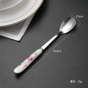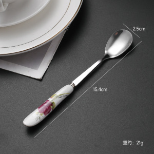 陶瓷多色花纹时尚创意长柄勺子酒店厨房搅拌勺配咖啡杯不绣钢彩釉