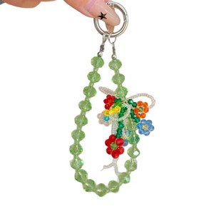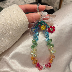 新しい小さな新鮮なグラデーションカラークリスタルビーズリボンフラワー携帯電話チェーンキーホルダー甘いファッションペンダント