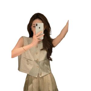 ハイエンドのスモールフレグランススタイルスリムベストショートアウターノースリーブトップフレンチレトロ新しい中国風のベスト女性の夏