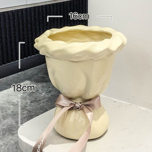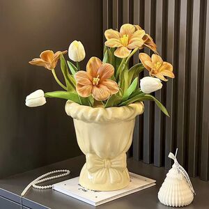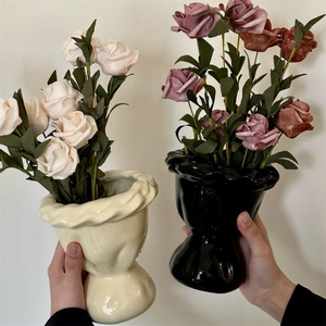 古典奶油风陶瓷花束花瓶轻奢北欧高级ins风插花复古水培客厅摆件