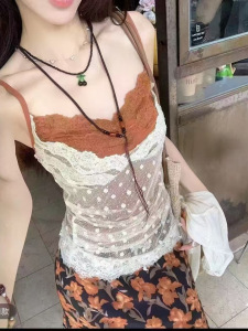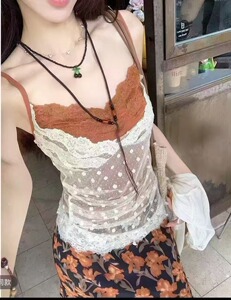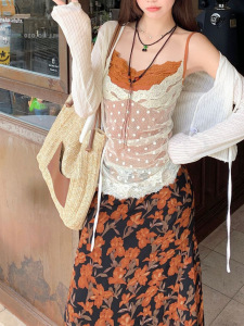純粋な欲望スタイルの薄い日焼け止めカーディガンレイヤード偽ツーピースベストトップ女性の夏の不規則な水玉レースサスペンダー