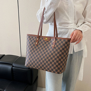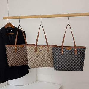ファッショナブルなレディースハンドバッグ 2025 新しい大容量多用途ショルダーバッグ仕事や通勤用女性用チェスとカードチェック柄トートバッグ