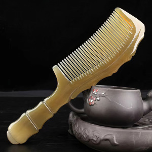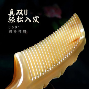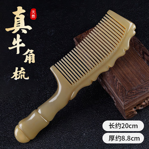 天然白水牛角竹节梳加厚密齿头部经络按摩家用男女士专用养发梳子