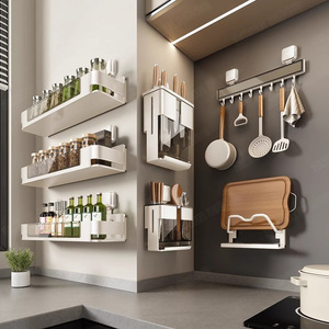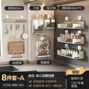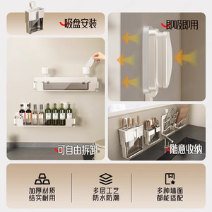 キッチン乳白吸盤収納ラック家庭用壁掛けパンチフリーナイフホルダーポットカバーラック調味料収納セット
