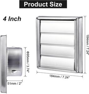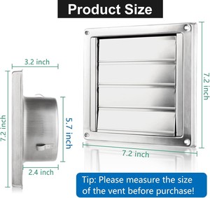 屋外壁ステンレス鋼可動正方形通気グリル排気口フード逆止弁ベネチアン防風防雨カバー