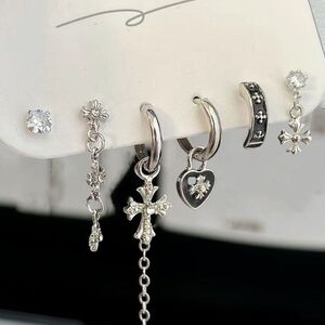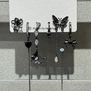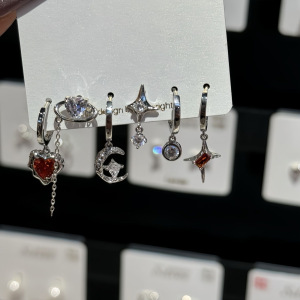 超クールな女の子! ラブジルコン6点イヤリングセット、甘くてクールなイヤリング、ニッチデザインイヤリングセット、イヤリング