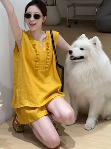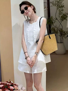 女性のためのルーズカジュアルスーツ 2025 夏立体タッセルノースリーブベストシャツハイウエストカジュアルショーツ 2 点セット