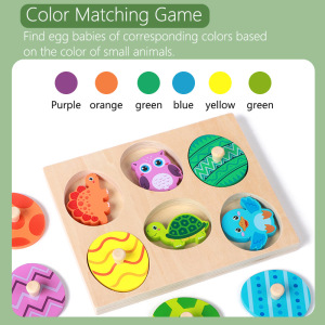 国境を越えた新しい木製早期教育教育多層パズルおもちゃ恐竜動物色認識マッチングハンドスクラッチボード
