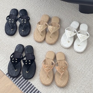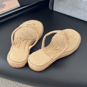 Xiaoxiangfeng シープスキンメタルダブル C バックルビーチサンダル麻縄底カジュアル多用途アウターウェアビーチフラットサンダル