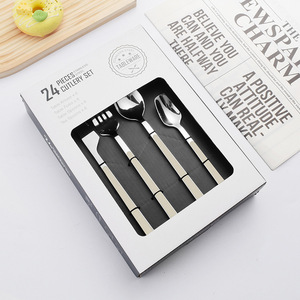 新しいステンレス鋼食器ギフトボックス家庭用クリップハンドルデザートスプーンクロスボーダーホット販売ステーキナイフ、フォーク、スプーンセット
