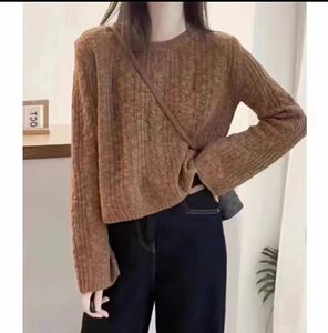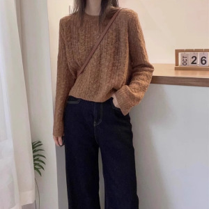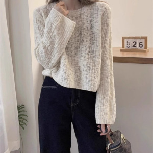 ローズレッド長袖セーター薄い女性の 2025 初秋の新しい怠惰なスタイルルーズショートソフトワックス状ラウンドネックセーター