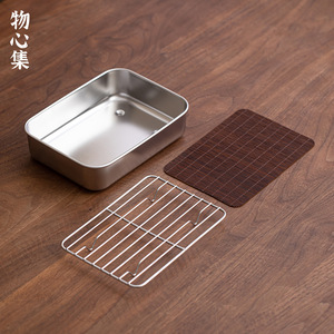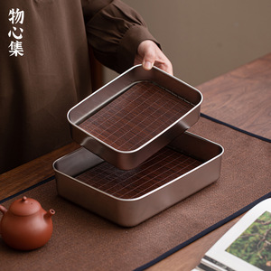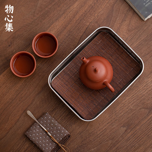 物心集茶台竹帘不锈钢茶盘干湿家用办公简约便捷复古中式蓄水茶台